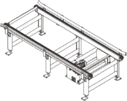 Chain conveyor is composed of frame assembly, drive assembly, support, chain and guard rail assembly etc. Motor on drive frame drives chain on both sides by drive shaft assembly. Chain is running along the tracking on frame. There is chain tensioning unit on drive frame. Steel or aluminum is available for frame material.